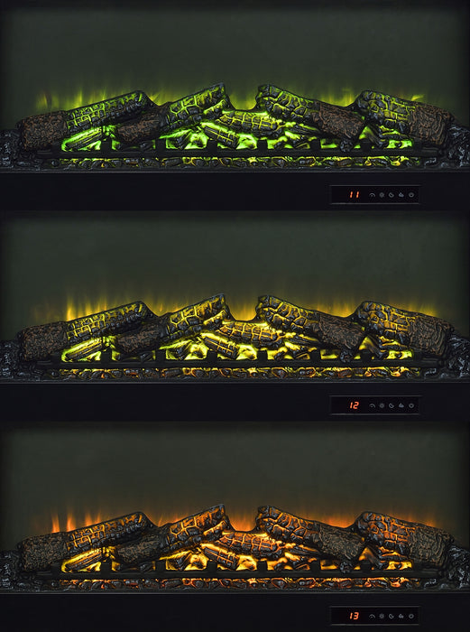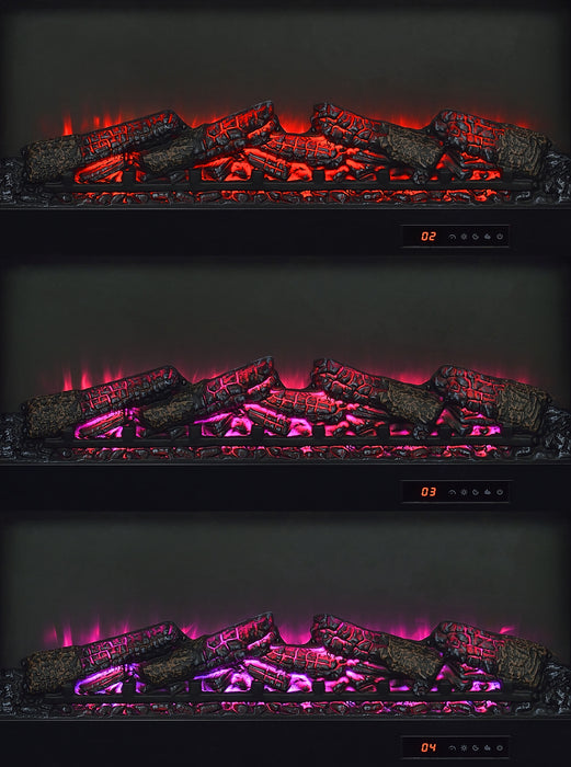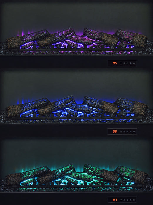 • Center fireplace insert without heat function and glowing ember display for cozy ambiance
