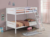 • White twin over twin bunk bed with clean modern lines and minimalist profile