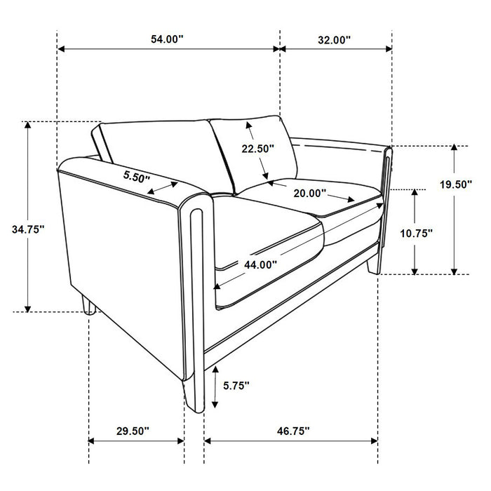 • Loveseat features a low-profile design with clean lines and recessed panel arms