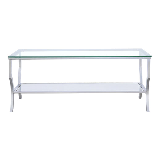 CoasterElevate your living room with this sleek rectangular coffee table, featuring a clear tempered glass top and lower shelf for practical storage. The ...