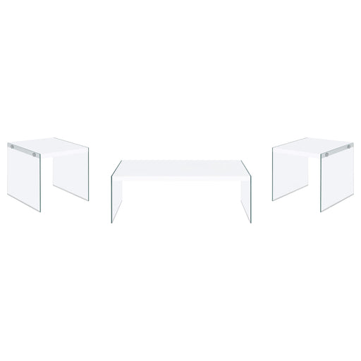 CoasterThis ultra-modern coffee table set pairs sleek white high-gloss finishes with clear tempered glass shelves for a contemporary aesthetic. Crafted fr...