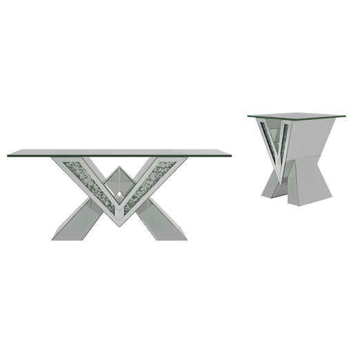 CoasterThis mirrored coffee table set brings modern luxury to any living space. Featuring a coffee table and matching end table, both pieces boast bold V-...