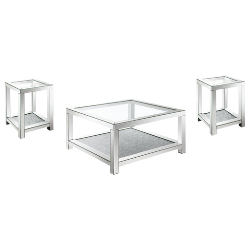 CoasterThis mirrored coffee table set exudes modern luxury with bold, diamond-shaped designs. Including a coffee table and two end tables, three pieces fe...