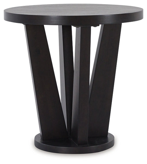 Signature Design by Ashley®Take a walk on the wild side. This end table brings you back to nature with artistic flair. Its one-of-a-kind contemporary design makes a statement...
