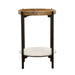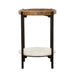 • Round end table crafted from mango wood, marble, and iron