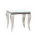 This end table exudes modern glam with a tempered beveled glass top and polished stainless steel cabriole legs. The reflective finish and gracefully curved Queen Anne style legs deliver timeless elegance and a majestic ambiance, perfect for elevating refined interiors. Its ultra-modern aesthetic combines style and practicality, making it an ideal choice for contemporary spaces. Smooth, easy-to-clean surfaces ensure effortless maintenance while preserving its sophisticated appeal.
