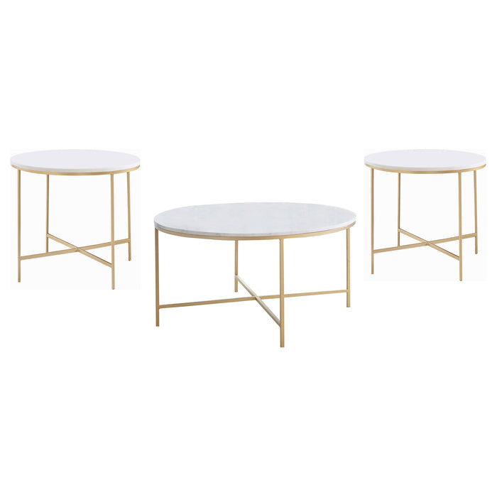 Ellison 3-piece Round Marble Coffee and End Table Set White