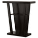 Angular in shape, this console table offers a dynamic design meant to impress. Dress up a transitional room with a space for displaying books, decor, or potted greenery. Luscious cappuccino offers a bold, dynamic finish. An eye-catching slanted silhouette creates a visual treat. Add this console to a central living space or an entryway.