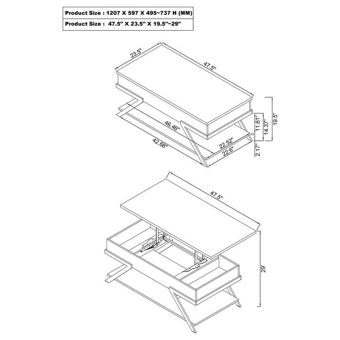 Complete your living room with this modern coffee table and end table set. Pieces feature a white high-gloss finish and angled chrome legs, delivering a clean, cohesive aesthetic. The coffee table includes a lift-top for hidden storage and a lower shelf, while the end table offers a convenient storage shelf. Built with engineered wood and durable metal, this stylish set blends contemporary design with functional appeal for trendy, practical spaces.