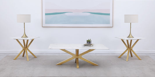 Visalia Faux Marble Top Stainless Steel Coffee Table Gold