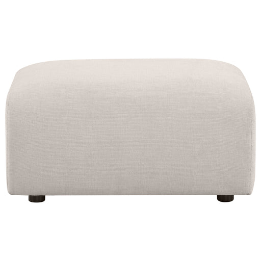 Complete your living room with this versatile ottoman, designed to blend seamlessly with modular setups or stand out on its own. Wrapped in a beige...