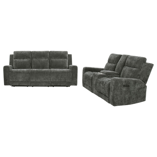 CoasterWrap yourself in the comfort of this chenille power reclining sofa set, where modern design meets everyday luxury. Smooth push-button recliners off...