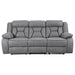 Relax, recline, and revel in the luxurious comfort of this motion sofa. With a chic and modern design, it's ideal for a contemporary living room. Its upholstery boasts a soft, smooth texture that feels lovely against the skin. Its plush seats and thick, padded headrests offer a cozy foundation to rest and relax. Complete with striking, stitched accents, it lends an inviting element of style to any modern home.
