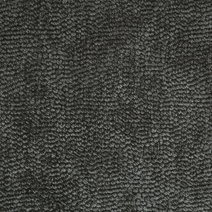 • Dark grey chenille upholstery features a soft texture with a refined woven appearance