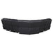Bring modern comfort and convenience into your living space with this power reclining sectional. Designed with a rounded silhouette and rich leatherette upholstery, it offers both style and durability. Plush foam filling with tufted and channeled detailing creates inviting comfort, while pocket coil seating with sinuous spring construction ensures lasting support. Smooth power recline functionality allows customized lounging, complemented by a wall-hugger design that saves space. A flip-top console with cup holders adds practical storage for everyday use.