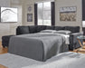 If style is the question, then this sleeper sectional is the answer. Sporting clean lines and sleek track arms, the decidedly contemporary profile is enhanced with plump cushioning and a chenille-feel upholstery that's so pleasing to the touch. Sure to play well with so many color schemes, this sleeper sectional in slate gray includes a pair of understated floral pattern pillows for fashionably fresh appeal. Crafted of quality memory foam, the pull-out full mattress comfortably accommodates overnight guests.