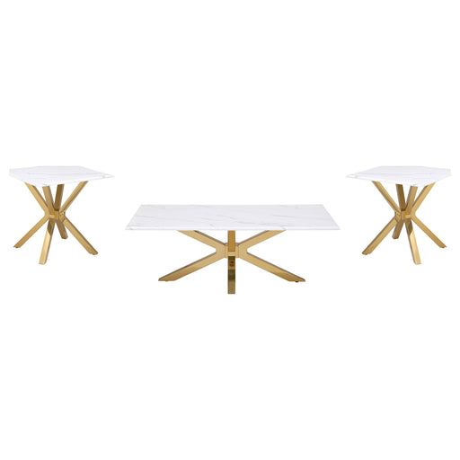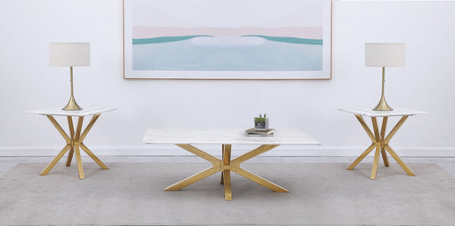 Visalia Faux Marble Top Stainless Steel End Table Gold