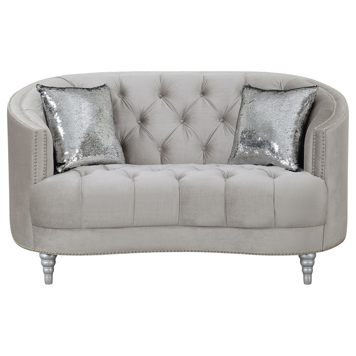 Avonlea Upholstered Sloped Arm Loveseat Grey Velvet