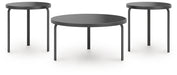 | Details | Includes coffee table and 2 end tables, Made with metal frame, Matte black finish, Round tempered black glass top | |