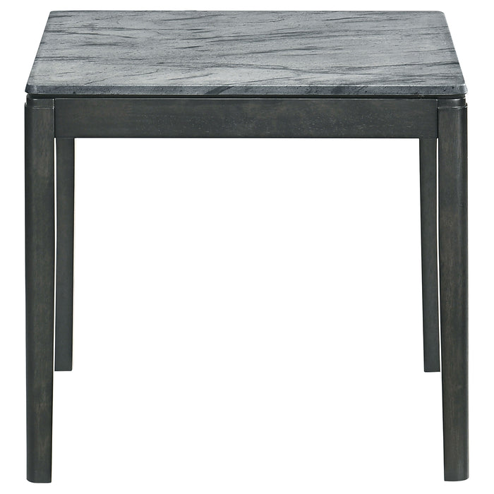 • End table with a grey faux marble high-pressure laminate top for a refined and modern appearance