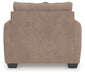 Transitional and right on trend. This oversized chair's upholstery is a delightful change from the ordinary, with hints of soft brown giving the gray hue added depth. It’s punctuated with a chic accent pillow in an eye-catching, stylized stripe design. Whether you're hosting friends and family or relaxing solo, this chair invites homey, comfortable character into your space.