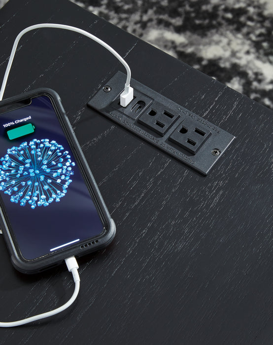 If you are a lover of simplicity, this chairside end table is the perfect choice. Its black finish, casual contemporary design and spacious storage capacity provide functional style wherever it’s displayed. And with conveniently located USB charging ports, this table keeps up with your high-tech lifestyle.