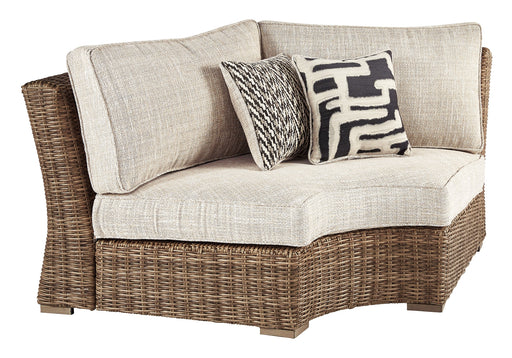 Signature Design by Ashley®Sporting an easy-on-the-eyes look inspired by driftwood, this curved corner chair with cushion elevates the art of alfresco living. Beautiful and d...