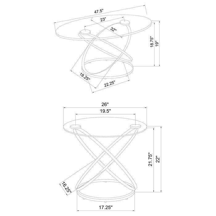 Warren 3-piece Oval Glass Top Coffee Table Set Chrome