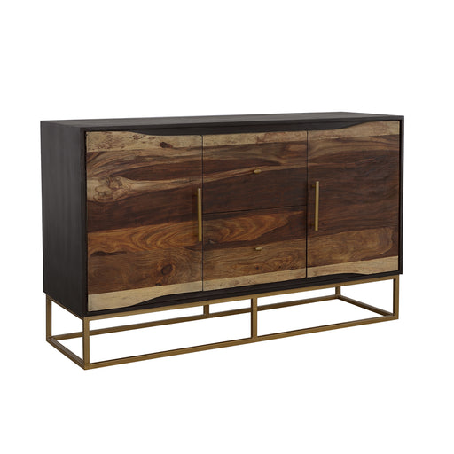 CoasterAn outstanding handcrafted wood accent table from India, this piece flaunts a range of natural wood colors. Two cabinet drawers boast sleek gold ba...