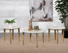 Elevate your living room with this coffee table set, combining a round coffee table and matching end table for a cohesive, natural aesthetic. Crafted with genuine white marble tops, each piece features unique veining that adds artisanal charm. The solid mango wood legs, finished in a natural tone, provide sturdy support and showcase organic grain patterns. Handcrafted in India, this set blends seamlessly with modern, minimalist, or rustic decor. Its earthy tones and durable materials ensure both style and longevity.