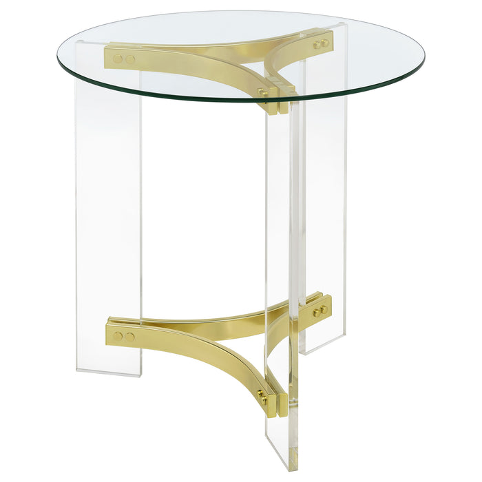 Janessa Round Glass Top Acrylic Leg End Table Matte Brass