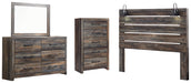 Details B192-46: Made of engineered wood (MDF/particleboard) and decorative laminate, Wispy white finish over replicated oak grain with authentic touch, Large-scale hardware with dark finish, 5 smooth-gliding drawers, Drawer interiors are lined with a faux linen laminate for a clean, finished look, Safety is a top priority, clothing storage units are designed to meet the most current standard for stability, ASTM F 2057 (ASTM International), Drawers extend out to accommodate maximum access to drawer interior while maintaining safety, B192-58: Made of engineered wood (MDF/particleboard) and decorative laminate, Wispy white finish over replicated oak grain with authentic touch, 2 decorative sconce lights, LED with 3 AA batteries, 2 slim-profile USB charging stations, Power cord included; UL Listed, Hardware not included, ¼" bolts are needed to attach headboard to existing bed frame, Bolt length depends on thickness of your bed frame, Assembly required, B192B1: Includes dresser with mirror, Made of engineered wood (MDF/particleboard) and decorative laminate, Wispy white finish over replicated oak grain with authentic touch, 6 smooth-gliding drawers, Drawer interiors are lined with a faux linen laminate for a clean, finished look, Large-scale hardware with dark finish, Mirror attaches to back of dresser, Assembly required,