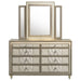 • Tempered glass tops the dresser for added shine and durable surface protection