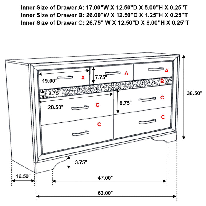 • Crystal drawer pulls and glitter accents enhance the glam aesthetic