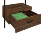 • Sleek, modern design with black metal frames and warm walnut finish