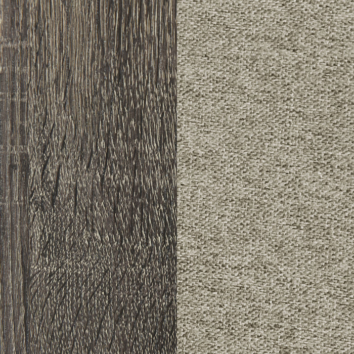 Create your ideal bedroom ambiance with the fresh, casual style of this transitional bedroom set. It features engineered wood construction with durable laminate surfaces, creating a stylish look with its brown oak wood grain finish. The set is clean lined, delivering a tall, squared headboard with foam padding and tan upholstery, creating the perfect place for lounging and reclining. The bed is complete with a low footboard and rails, offering a complete look that remains open and airy, great in small and large bedrooms alike. Storage pieces add ample drawer space and roomy tops, perfect for creating organization and offering a place for a personal touch of decor.